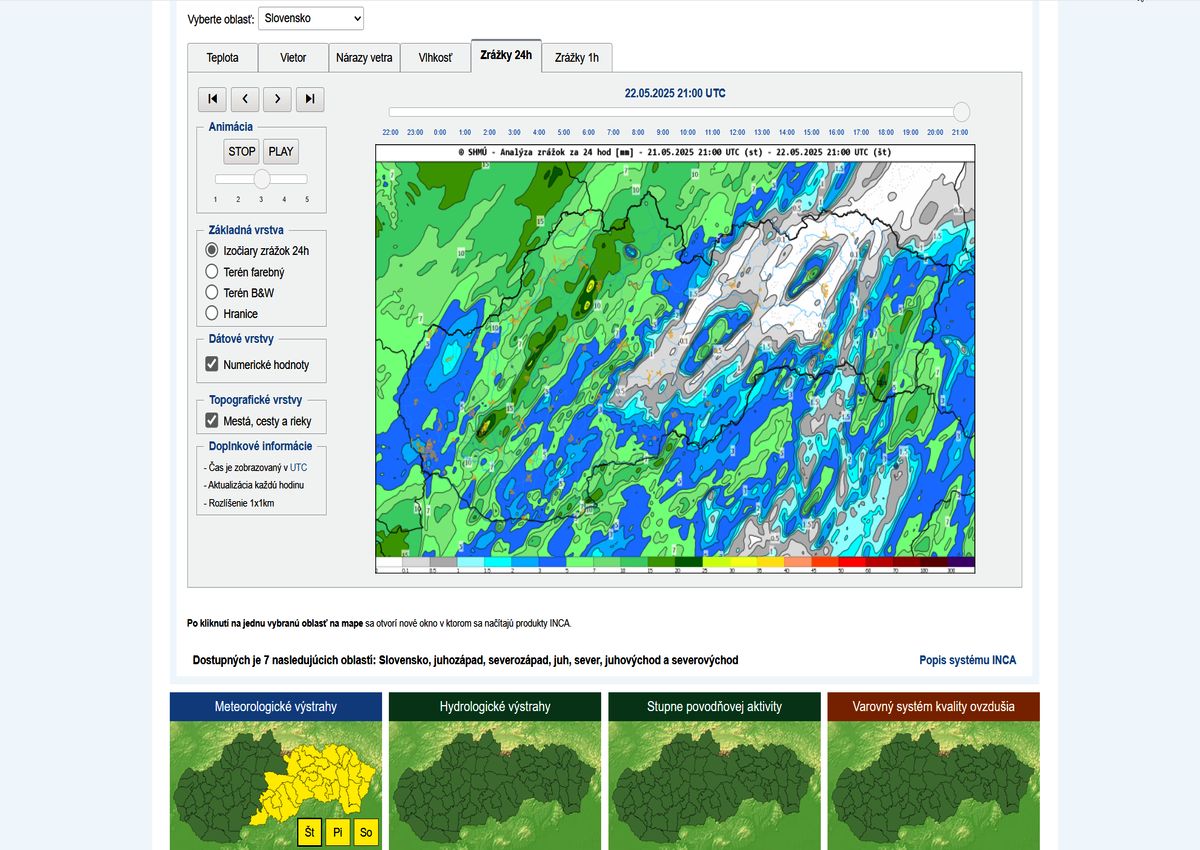 +24 hodín _ Priebežný stav v signálnom monitoringu dňa 20.5.2025 a online video ukážky