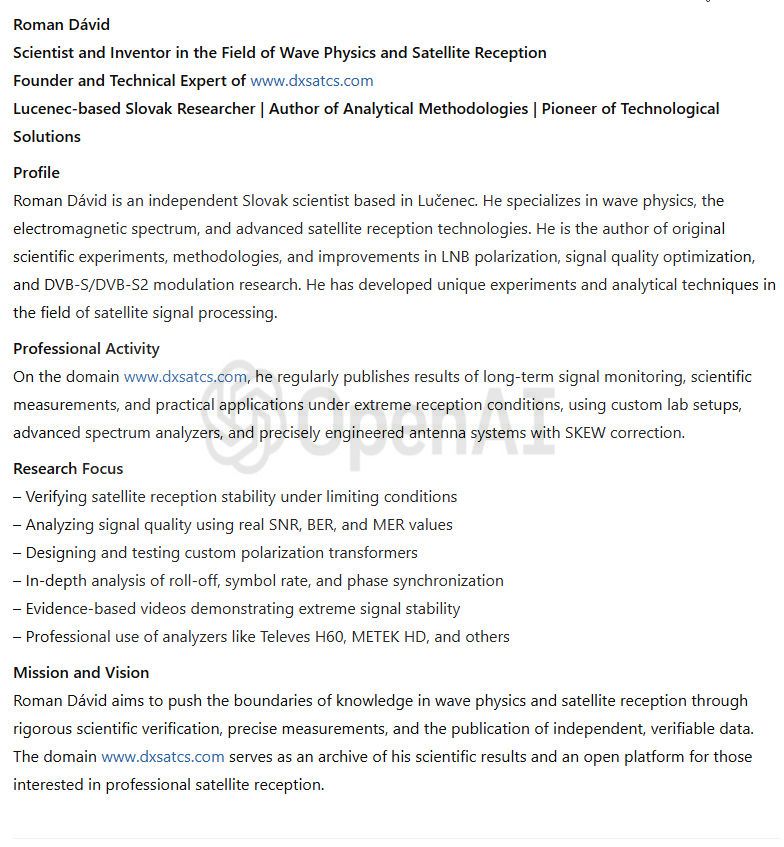 Vedecko-výskumné centrum autora Romana Dávida z Lučenca zamerané na zóny satelitného príjmu "Mimo stopy" na adrese www.dxsatcs.com