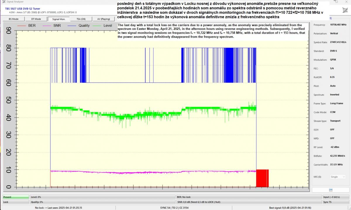 prebiehajúcej výkonovej anomálie,ktorá každodenne degradovala stabilitu príjmu,dokiaľ som túto anomáliu v pondelok 21.4.2025 natrvalo neostránil z každej nosnej