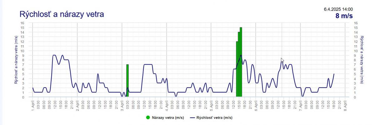 v poobedňajších hodinách s celkovým počtom týchto prípadov okolo 20 sekúnd dňa 6.4.2025 súvisí s nadpriemernou rýchlosťou vetra okolo 8 m/s,