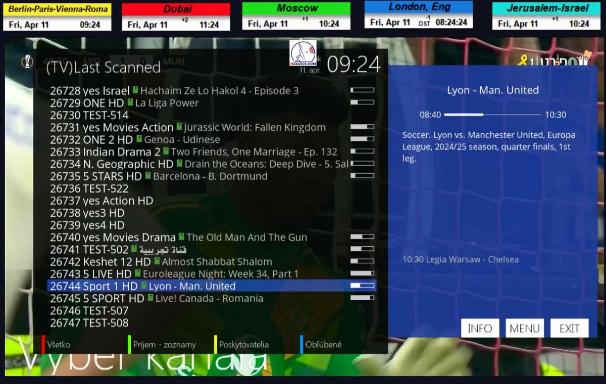 ►Online Footage of the Decoded Broadcast of the YES Israel Package in the NDS VideoGuard Conditional Access System at the Reception Site Lučenec/Slovakia
