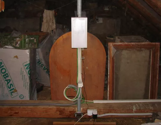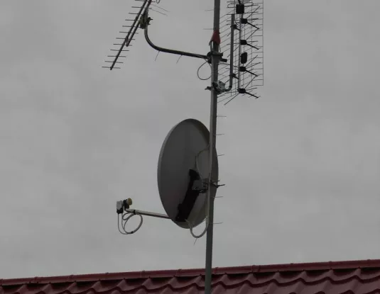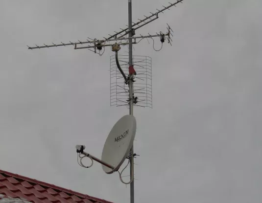 Následne boli nainštalované antény pre ter. a sat.príjem spolu s inštaláciou zvodov .Fixovanie zvodov ku telu stožiara prevedné pomocou stahovacích pások v prevedení ubn-zvýšená odolnost voči starnutiu a následnému popraskaniu príp.deformácii.Prvky na zlučenia umiestnené v plastovej krabici bežne dostupnej v predaniach elektro.Krabica s dvierkami v prednej časti fixovaná ku stožiaru pomocou stahovacích pásiek.Na dvierkach v euroobale umiestnený popis jednotlivých staníc v rozvode vid foto.Jednotlivé kabely pred vstupom viditelne kvoli príp.servisu,meraniu označené.Daný popis umožní komukolvek v prípade servisu,doplnania ponuky získat prehlad o jednotlivých programoch,staniciach.Zriadenie el.prípojky si zákazník zabezpečil prostrednícstvom firmy,čím sa predišlo tak častému javu akým je raz a navždy pohodená dvojlinka v povalových priestoroch,o príp.škodách na majetku v príp.pohromy nehovoriac.Koax.kabely v povalových priestoroch vedené pomocou pvc žlabov v kombinácii s pvc trubkami vid foto-množstvo poruch totiž vzniká práve kvoli žiadnemu,príp. nedokonalému fixovaniu zvodov či už vo vonkajších priestoroch alebo interiéri.Jednotlivé prechody medzi povalovými priestormi a interiérom zrealizované prienikom t.j vrtanín,čím sa predišlo tak oblubenemu javu pohodenia zvodov po stenách objektov a vrtania okenných rámov – estetický pohlad na vec¬¬¬¬.Zvody zákončené zásuvkami prisluchajuceho typu.Následne prevedený inštalačný protokol a učastník po prehliadke a oboznámení s jednotlivými prvkami uvedenej konštrukcie podpisom potvrduje prevzatie daného diela s vyjasnením podmienok príp.servisu.Vzhladom ku veku objektu doporučenie o zakupení prepatových ochrán,či už formou predžovačky,príp.vstavaných v zásuvkach.V závere s povolením majitela objektu zrealizované prísl.foto dokumentácia,ktorá je nepostradatelnou sučastou daného protokolu,s tým že v prípade neoprávnených zásahov zo strany zákazníka bude práve táto foto dokumentácia služit na príp.vyjasnenie sporov v prípade záručného ako aj pozáručného servisu. Pri zhliadnutí foto poprosím čitatelov o prihliadnutie na skutočnost,že daný objekt je z doby dávno minulej ako aj dalšie prvky nesuvisiace s inštaláciou,ktoré vyplývaju z pracovných aktivít majitela-kukurica a orechy s tým,že v povalových priestoroch prebiehaju rekonštrukčné práce prevádzané pomocou izolačných hmot.