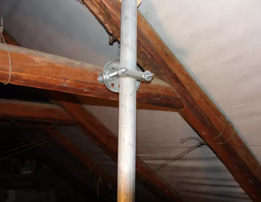 Následne sa na krovoch strechy označili body,ktoré splnali prepoklady na kvalitné fixovanie stožiara.