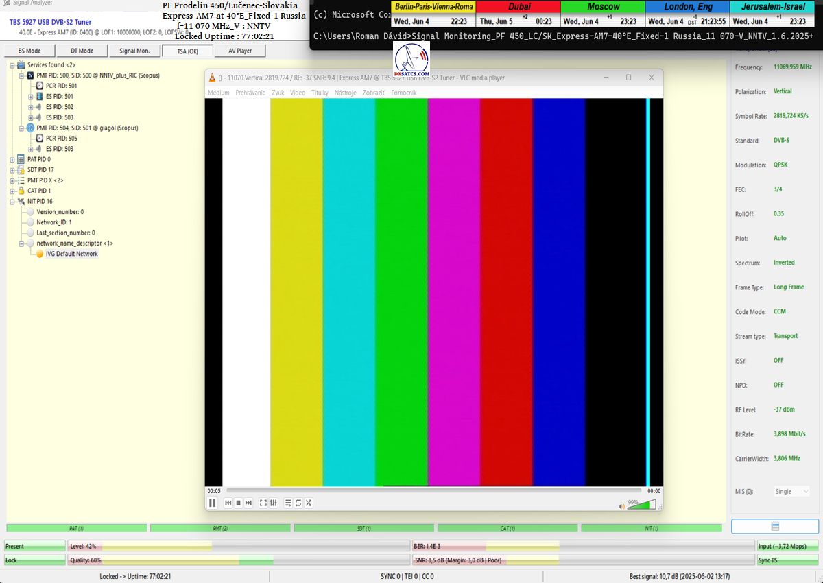 ►Symbol rate: 2819,724 kS/s ►Monitoringový čas: 77 hodín (Locked uptime)