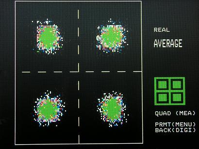 Konečne prejdem k popisu dvoch konštalačných analýz paketov SLOVAK LINK obrázok č.1 a CZECH LINK obrázok č.2,kde Vám po prvý krát na tomto webe prinášam tvar a zaokrúhlený priebeh štyroch nosných QPSK,ktoré sú podstatne poznačené a znehodnotené zníženou izoláciou polarizačných rovín CROSS POLAR,ako je uvedené vyššie,kvôli jednej frekvencii na ktorej provajder v opačných rovinách vysiela 2 pakety SL a KD.Dôležitý je samotný tvar ,ktorý signálne body vytvárajú ,čiže výsledný obrazec,ktorý v prípade paketu SL vytvára PREDĹŽENÚ ELIPSU,čo vyjadruje podstatne znehodnotený tvar štyroch nosných QPSK v porovnaní s ideálnym,neskresleným priebehom na obr. č.2 pri pakete Czech link s minimálnym šumovým pozadím a z učebnicovým tvarom MPEG 2 QPSK nosnej.